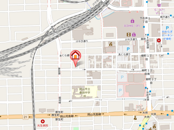 | 交通 | JR山陽本線/岡山駅 徒歩15分 JR宇野線/大元駅 JR山陽本線/北長瀬駅 |