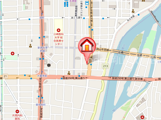 | 交通 | JR山陽本線/岡山駅 徒歩19分 岡山電気軌道東山本線/西大寺町駅 徒歩3分 岡山電気軌道清輝橋線/大雲寺前駅 徒歩5分 |
