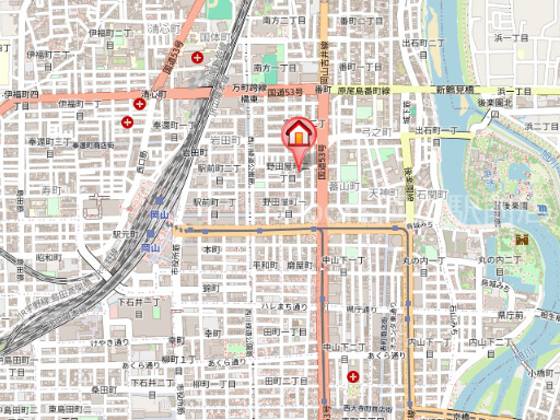 | 交通 | JR山陽本線/岡山駅 徒歩8分 岡山電気軌道東山本線/柳川駅 徒歩4分 岡山電気軌道東山本線/西川緑道公園駅 徒歩4分 |